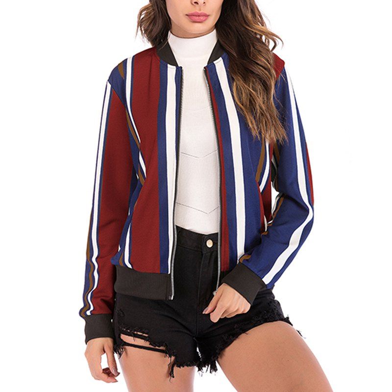 Col d'automne collier rayure couleur fermeture éclair manches longues manteau de baseball veste veste