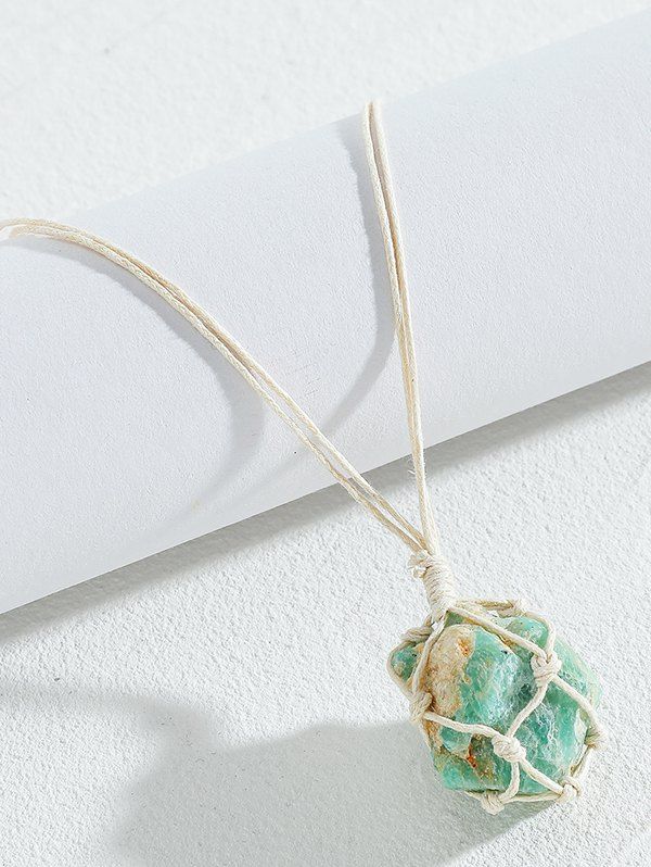 Ajoutez une touche de fraîcheur à votre look avec ce collier composé d'une corde et d'un pendentif en pierre irrégulière.