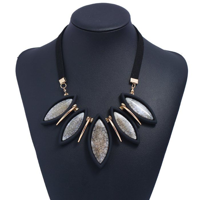 Collier Pendant Feuille Design en Fausse Gemme - Gris