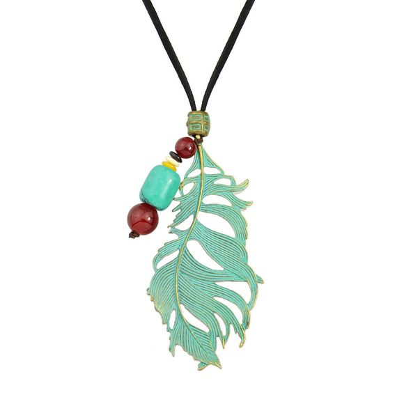Collier pendentif en forme de plume de paon de mode - Bleu Tiffany
