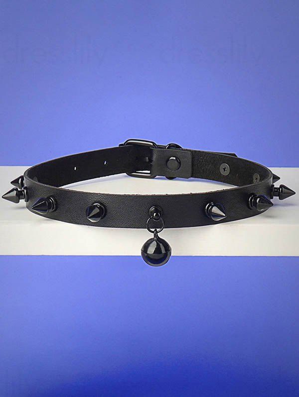 Collier Ras-de-Cou en Simili Cuir avec Pendentif Géométrique et Rivets Style Punk