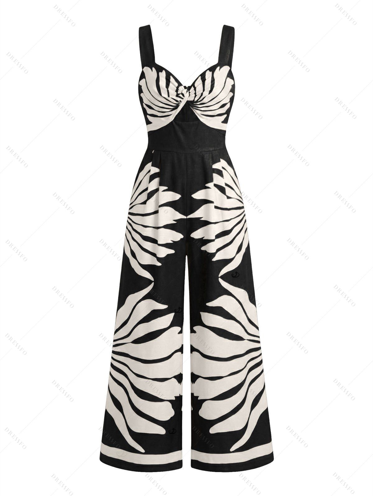 Combinaison de vacances à imprimé feuilles et jambes larges torsadées