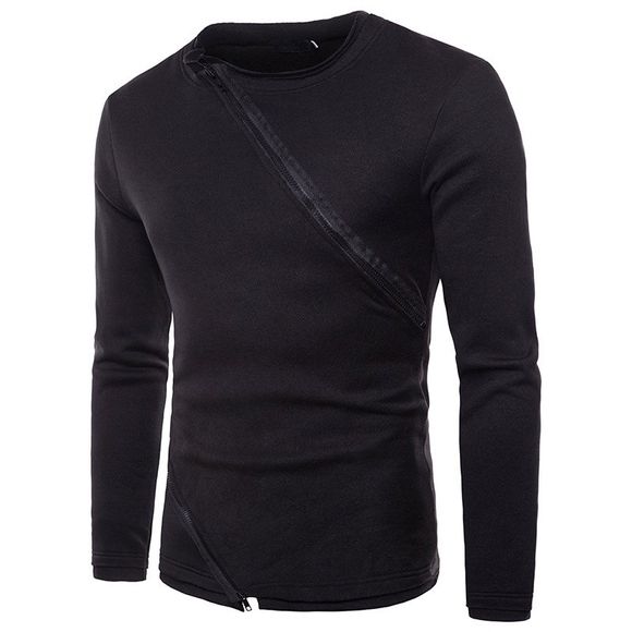 Couleur unie pull diagonal de la mode design pour hommes - Noir XL