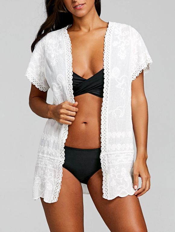 Description du produit: Les casques blancs sont essentiels pour votre garde-robe estivale pour façonner votre silhouette. Avec des détails de broderie partout, cette couverture a des manches courtes, adorable garnitures festonnées, et la longueur de la tunique qui ne peut couvrir la hanche. Portez-le avec des bikinis sexy ou des monokinis qui auront l'air sexy et chic.