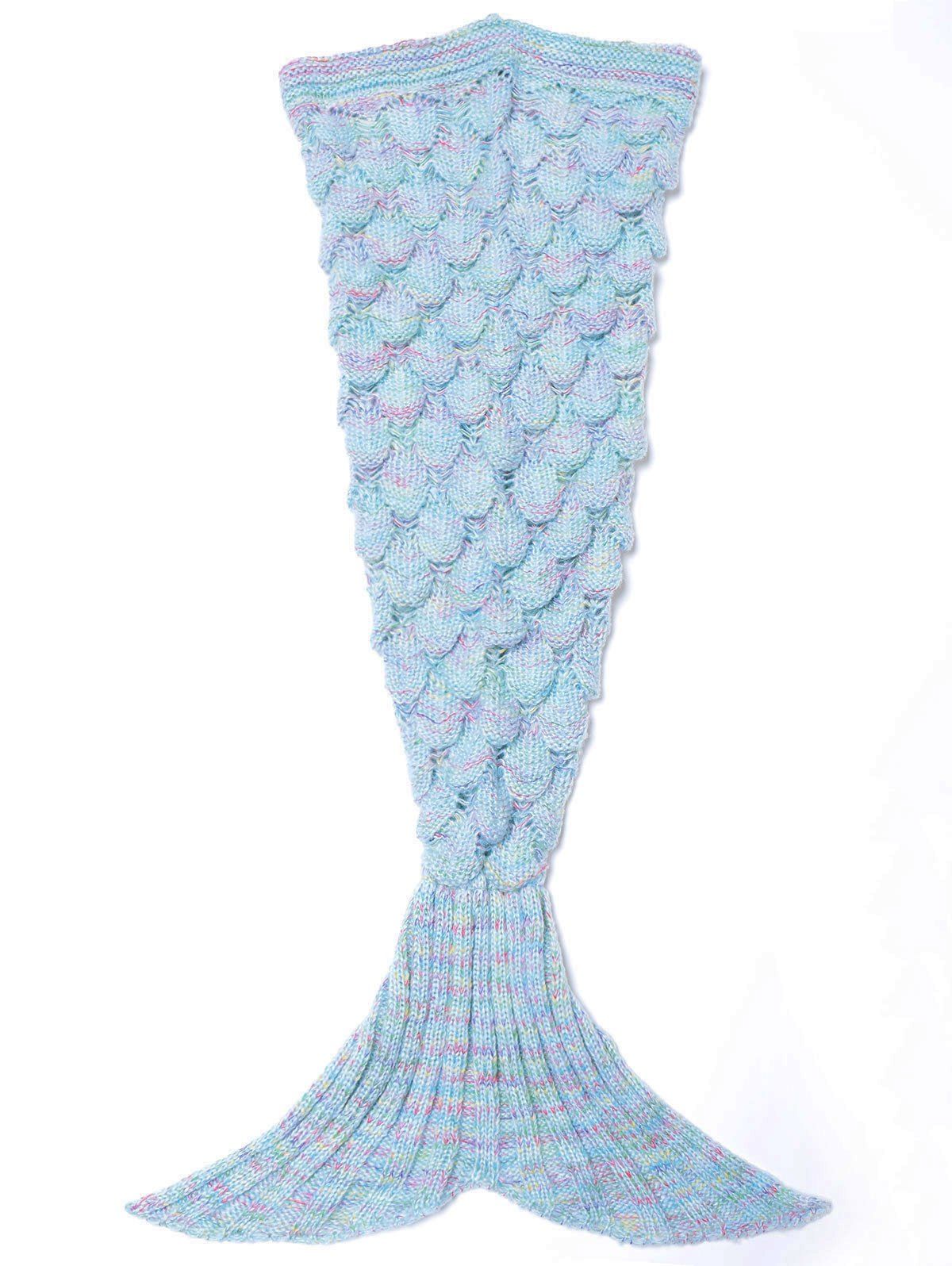Couverture tricotée multicolore conception Sirène - Bleu clair