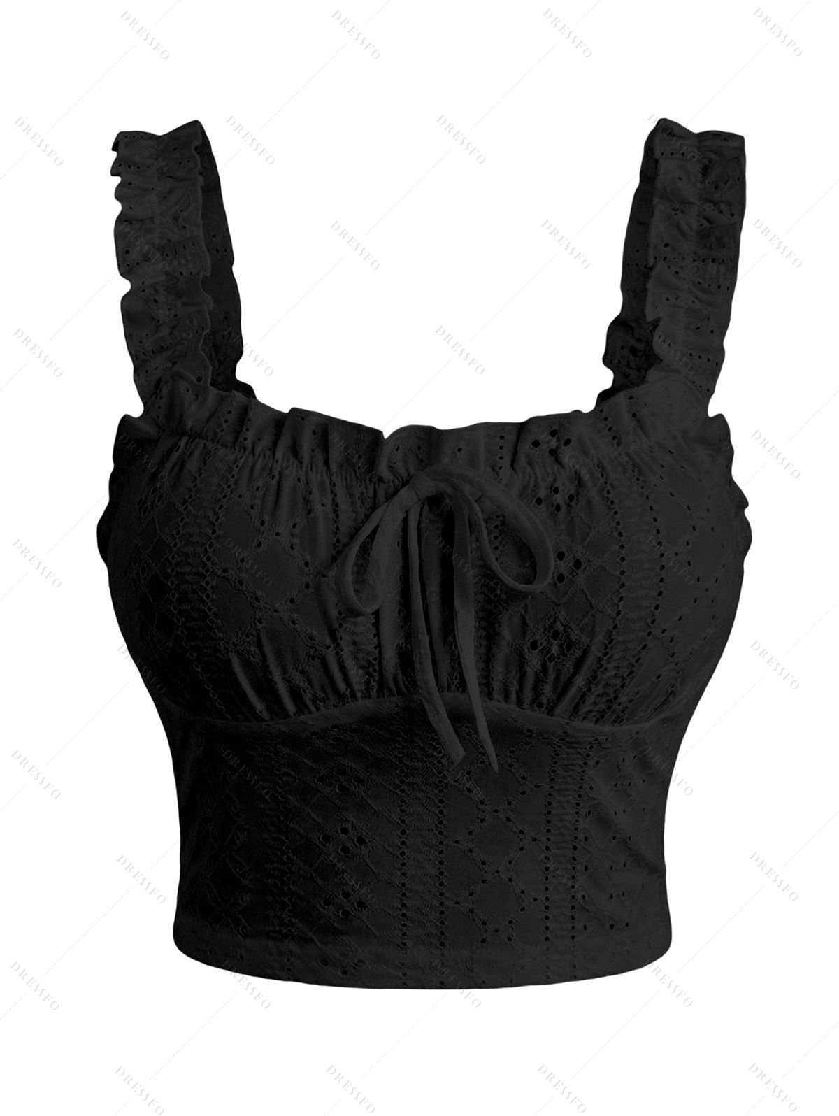 Débardeur court de vacances à volants et œillets, nœud papillon, couleur unie - Noir XL | US 10