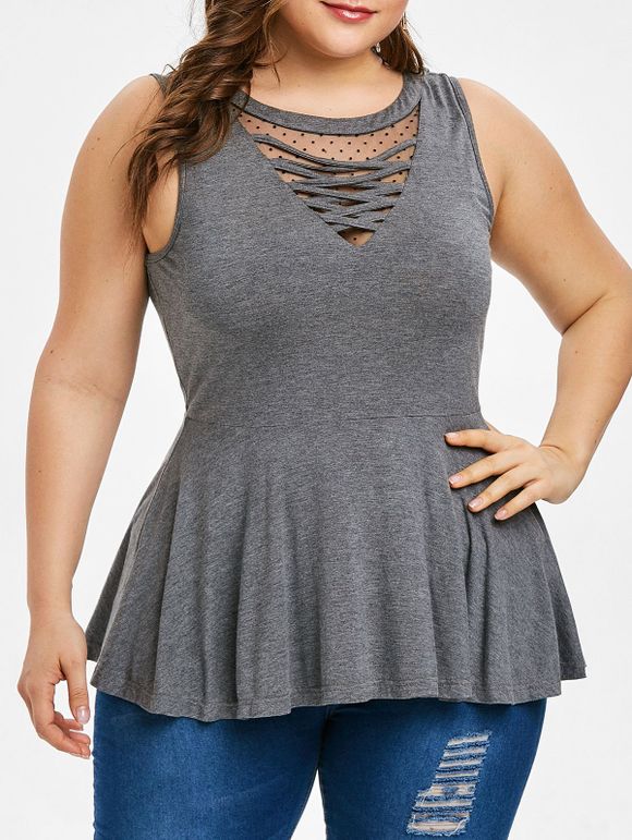 Débardeur Péplum Croisé de Grande Taille - Gris 3X
