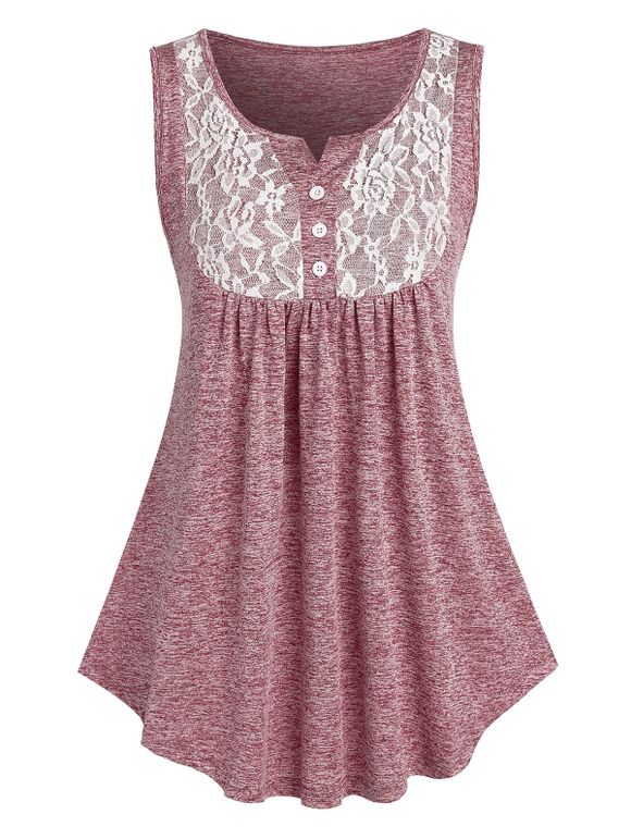 Débardeur Teinté Panneau en Dentelle - Rose clair XL