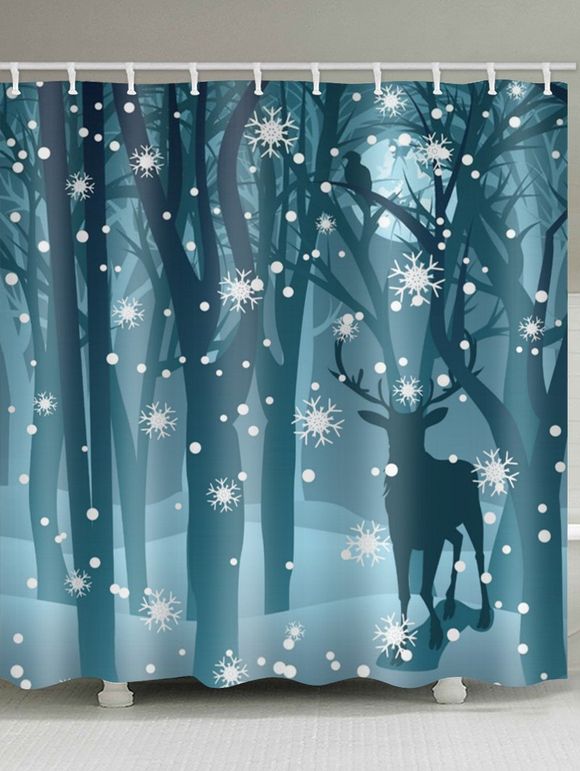 Rideaux de Douche Imperméable Cerf Dans Neige et Forêt Imprimés - multicolor W59 X L71 INCH