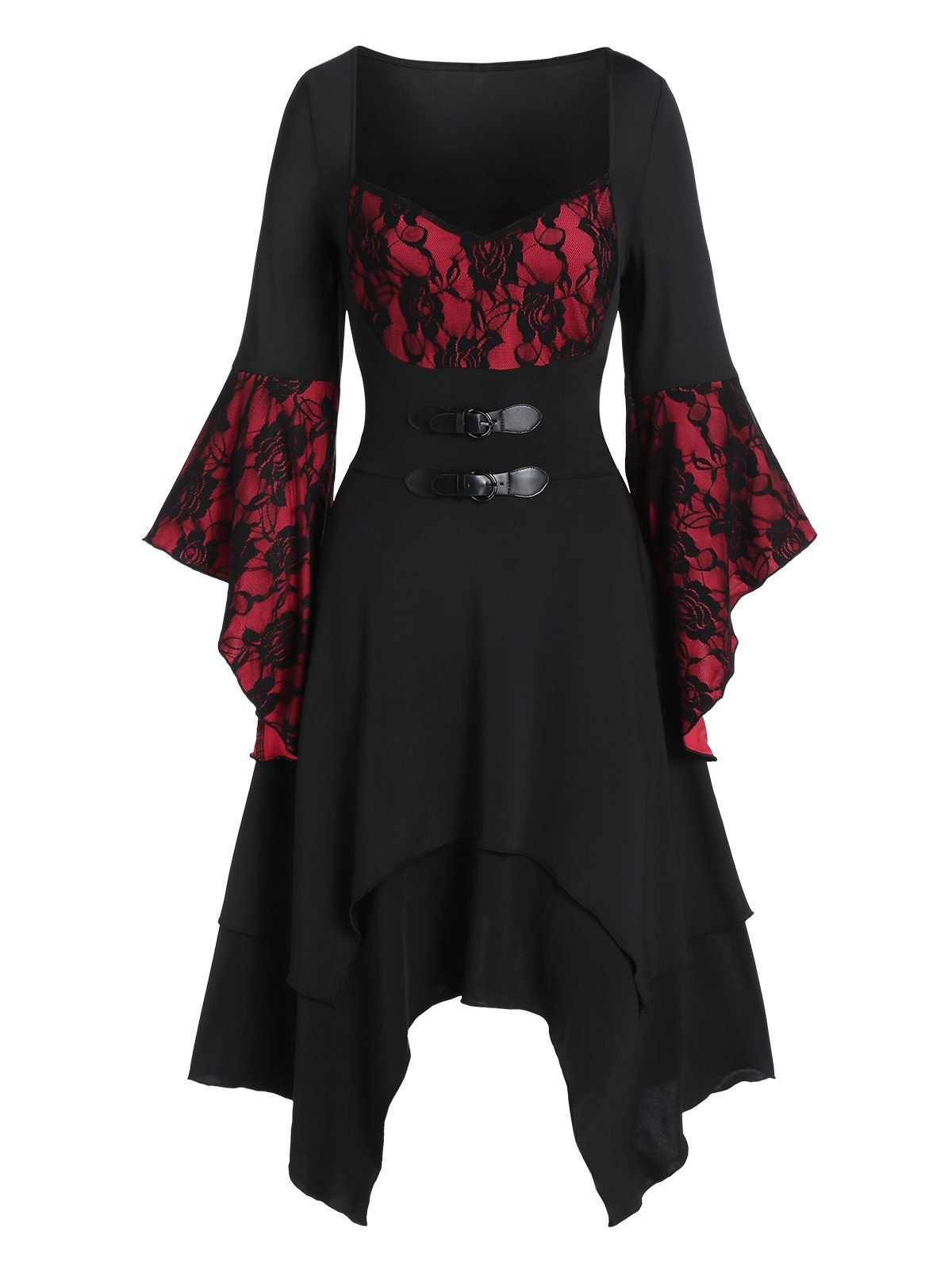 Deux tons dentelle Flare manches Mouchoir Robe