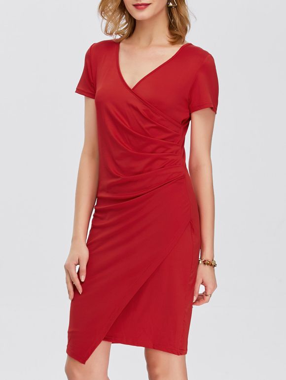 Drapé asymétrique V Neck Dress - Rouge M