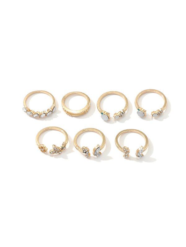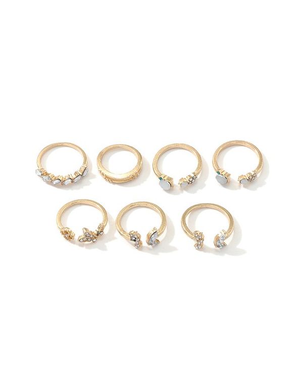 Ensemble de Bagues Fleur Papillon avec Strass 7 Pièces - Or