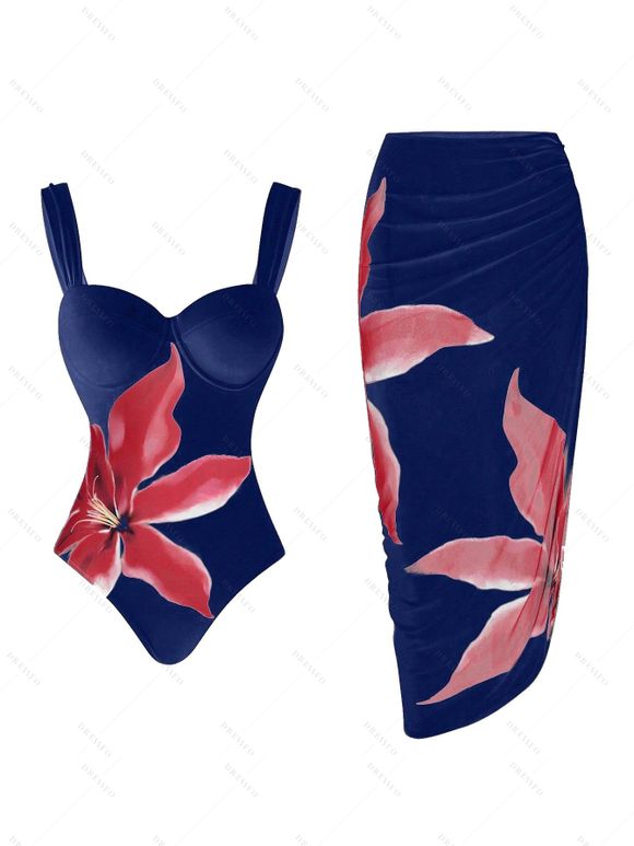 Ensemble maillot de bain de vacances Lily à imprimé floral, maillot de bain une pièce à armatures et jupe moulante