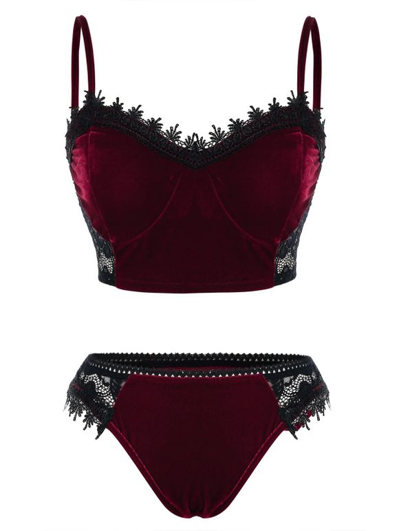 Ensemble de Soutien-Gorge en Dentelle Transparente en Velours Grande-Taille