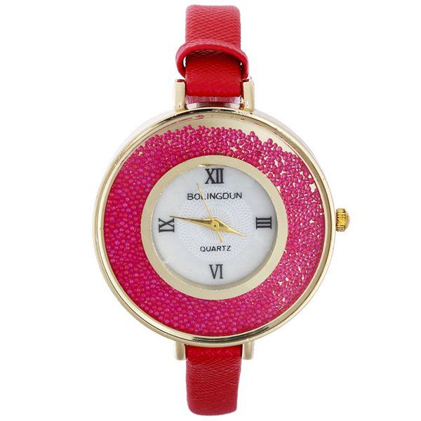 Faux cuir chiffres romains Perles Montre - Rouge