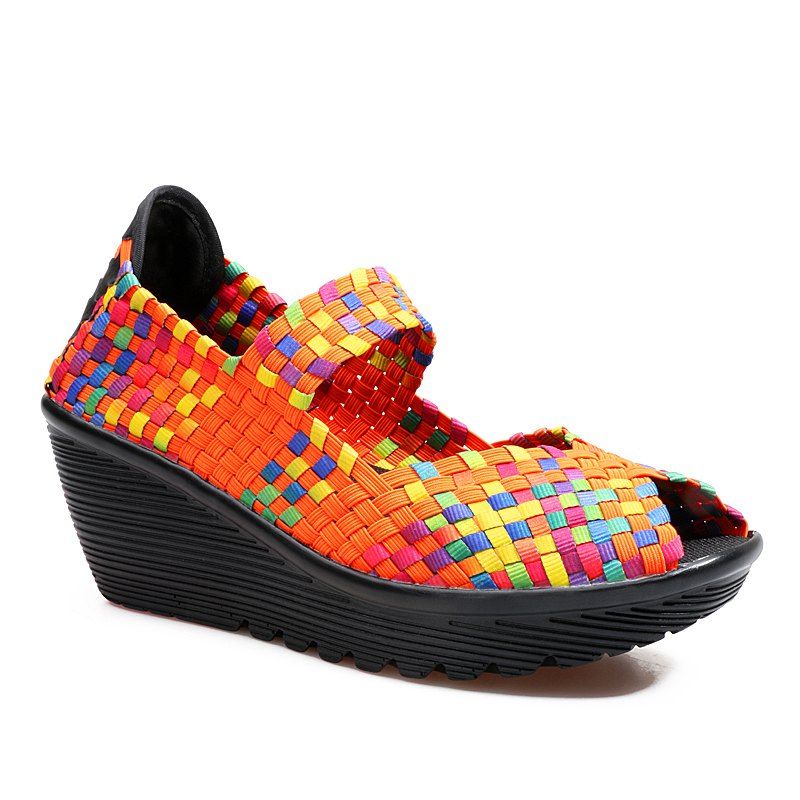 Femmes Slope avec Fish Mouth Ensemble de sandales - Point Orange 36
