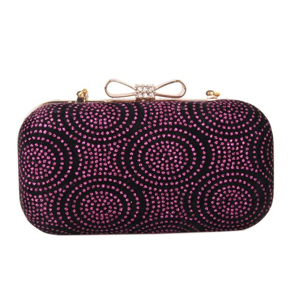 Femmes Sac Minaudière Strass Noeud Chaîne En Métal MiniSpot Evénement De Mariage Partie - Rose Fuchsia