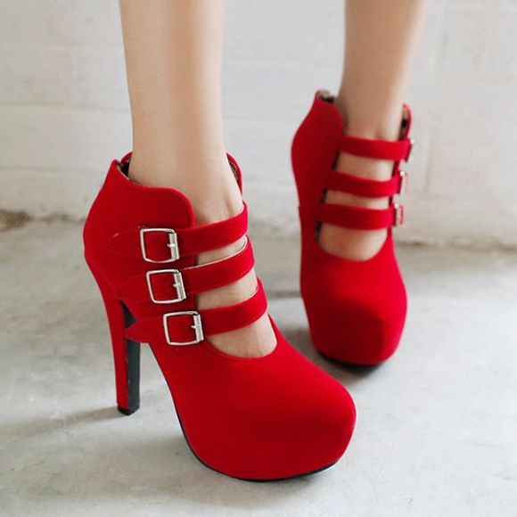 Flock Trendy et Buckles design Femmes  's Bottines - Rouge 37