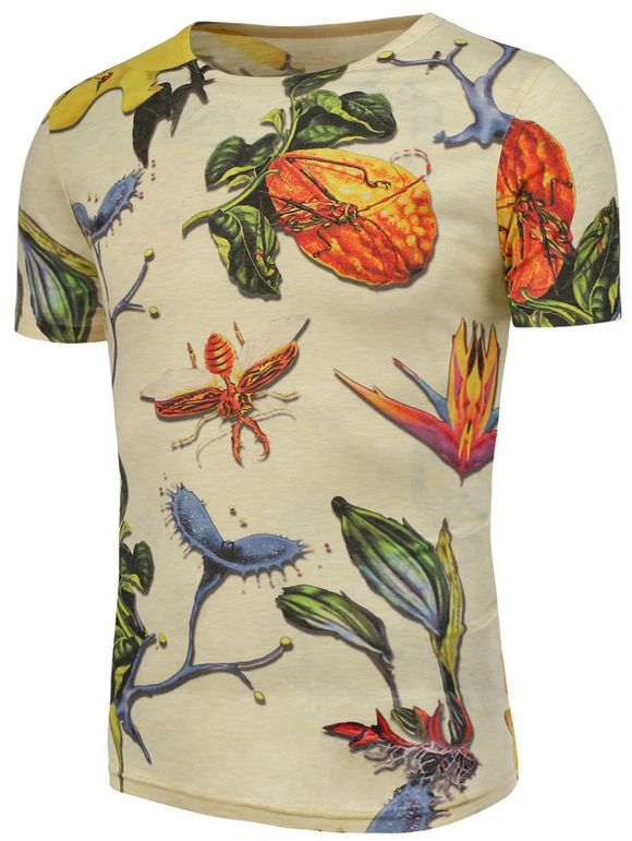 Floral 3D et Insecte T-shirt imprimé - multicolore XL
