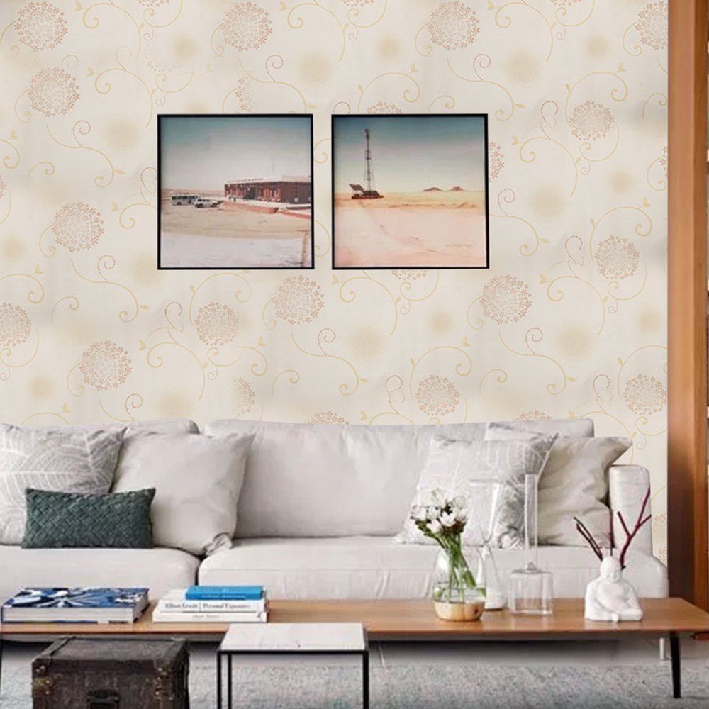 Fond d'écran élégant de décoration de maison d'impression auto-adhésive de PVC - Beige 1000X53CM