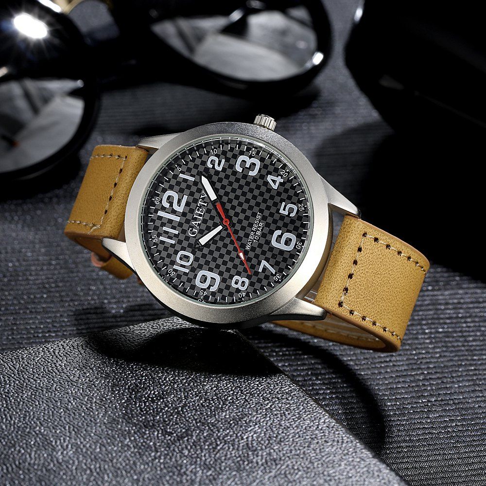 GAIETY G001 Montre à Cadran Rond de Chiffres Arabes avec Bracelet en Cuir pour Homme