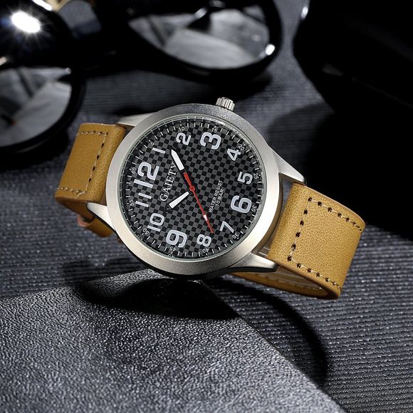 GAIETY G001 Montre à Cadran Rond de Chiffres Arabes avec Bracelet en Cuir pour Homme - Jaune