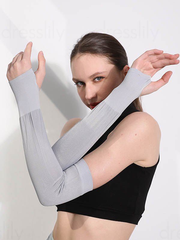 Gants d'Avant-bras de Protection Solaire Extérieure de Couleur Unie avec Trou pour Pouce - Gris Foncé 1 PAIR