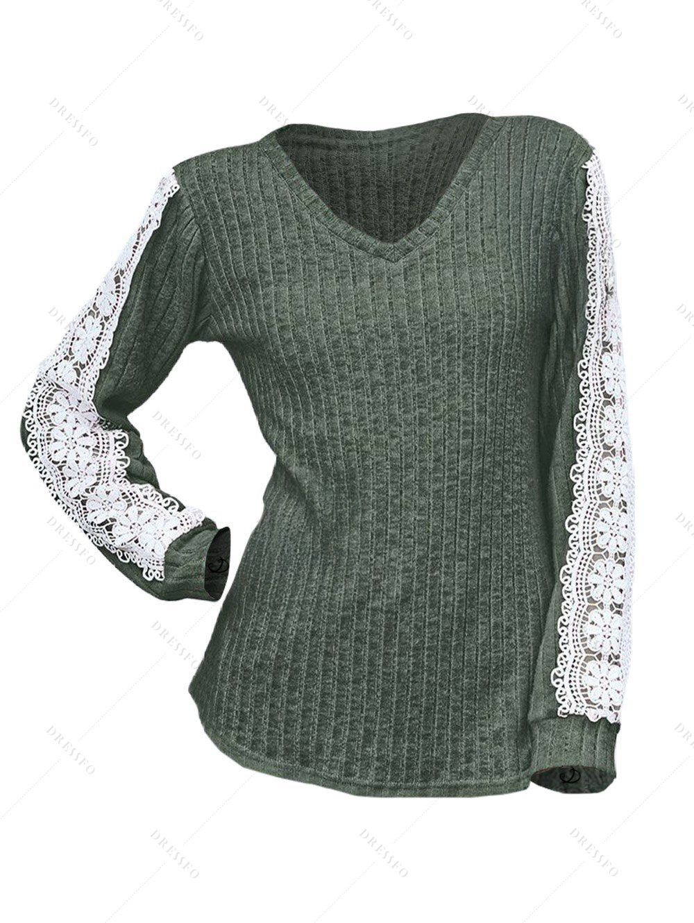 Haut colorblock à manches en dentelle et ourlet incurvé texturé - Vert Armée XXL | US 12