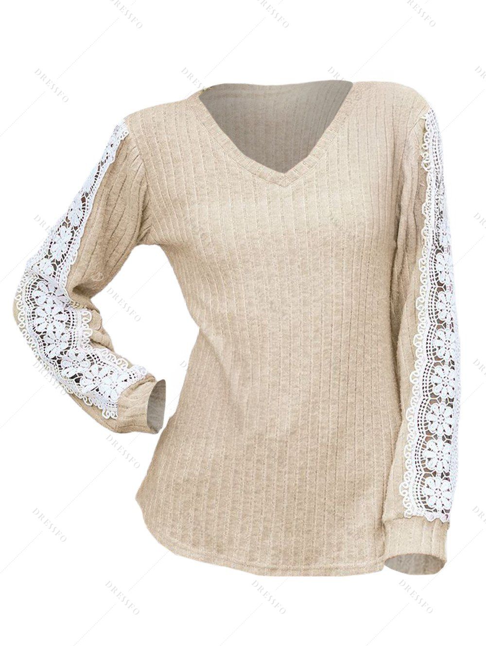 Haut colorblock à manches en dentelle et ourlet incurvé texturé - Abricot XXL | US 12