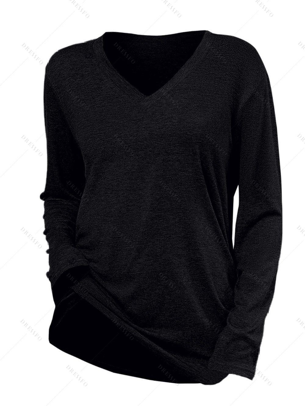 Haut décontracté chiné à manches longues et col en V froncé - Noir XXL | US 12