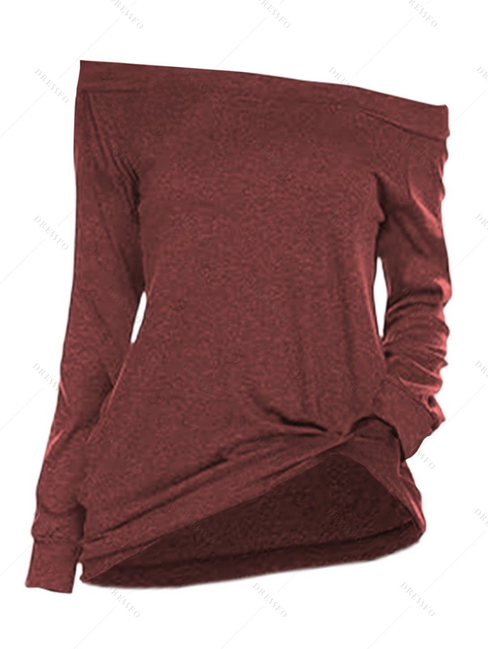 Haut décontracté chiné à manches longues et col incliné - Rouge foncé XXL | US 12