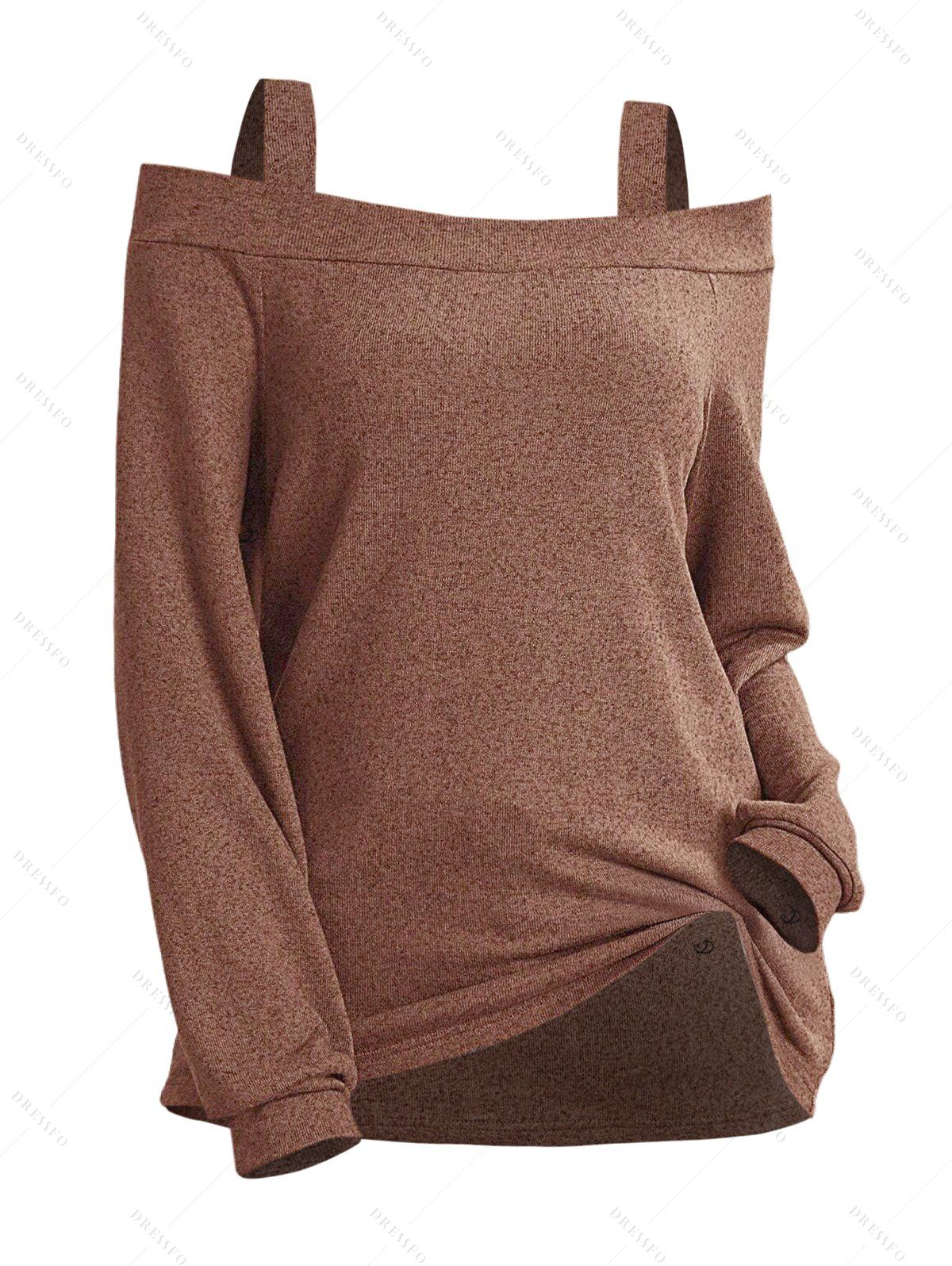 Haut décontracté chiné à manches longues et épaules dénudées - café XXL | US 12