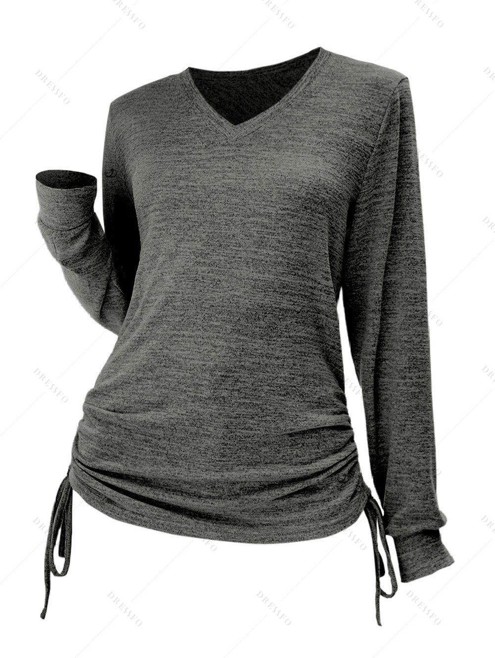 Haut décontracté cintré à manches longues et col en V - Gris Foncé XXL | US 12