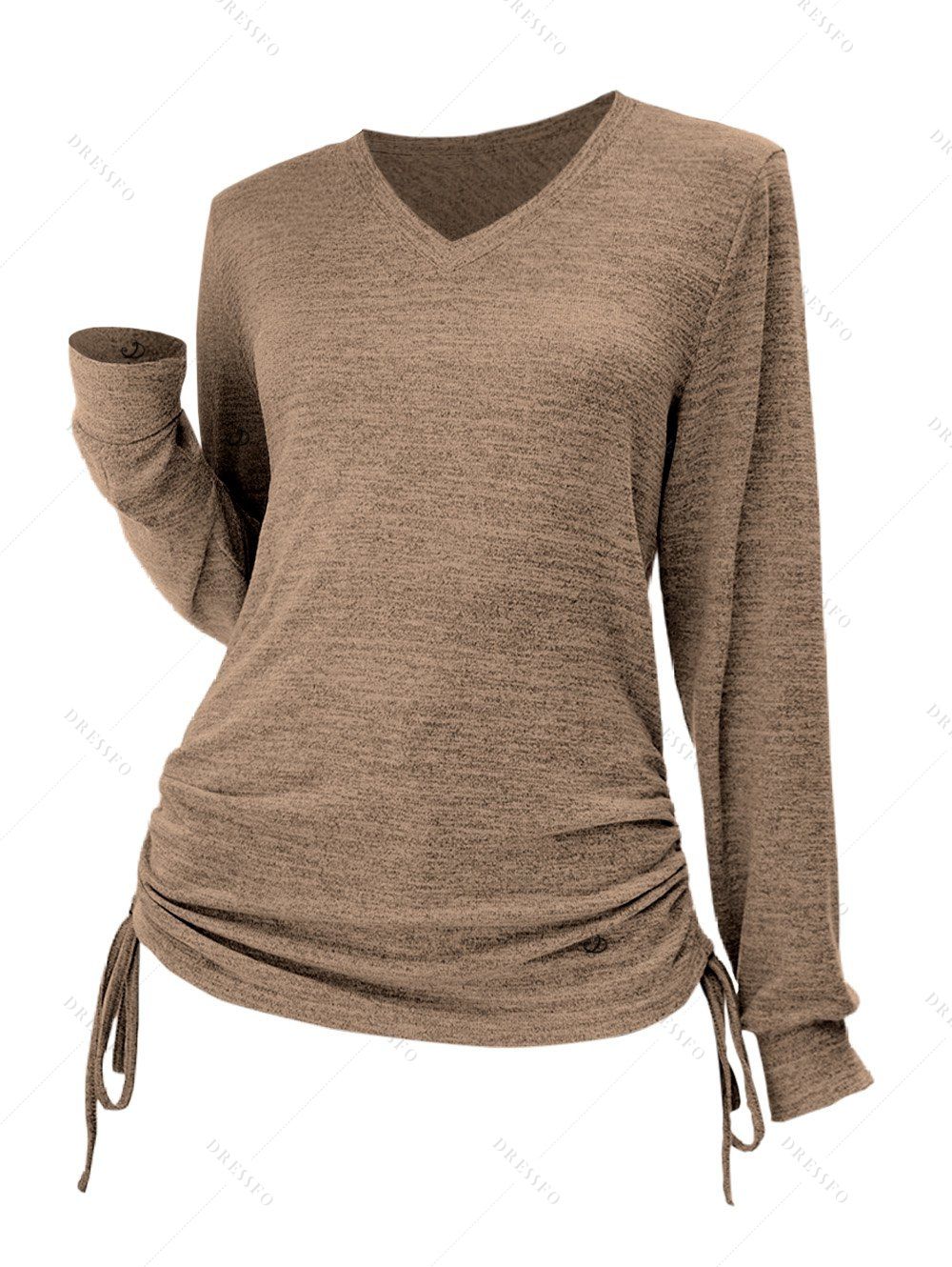 Haut décontracté cintré à manches longues et col en V - café lumière XXL | US 12