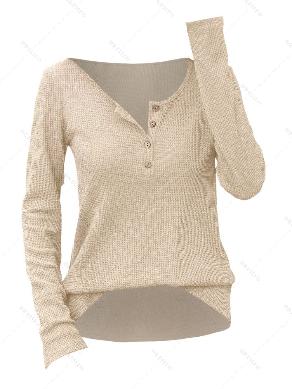 Haut décontracté de couleur unie, haut à manches longues avec boutons texturés - Abricot XXL | US 12