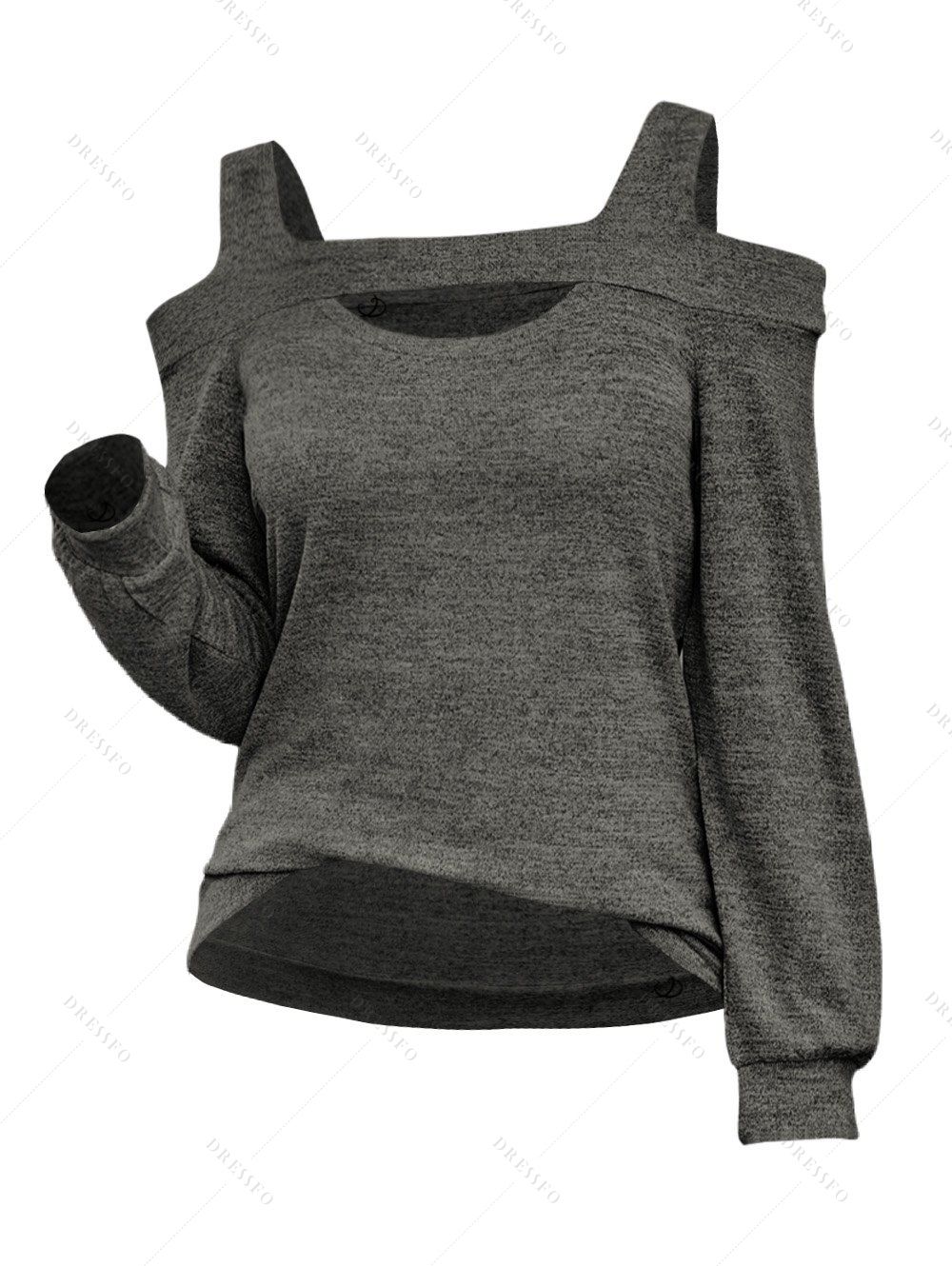 Haut décontracté à manches longues et épaules dénudées - Gris Foncé XXL | US 12