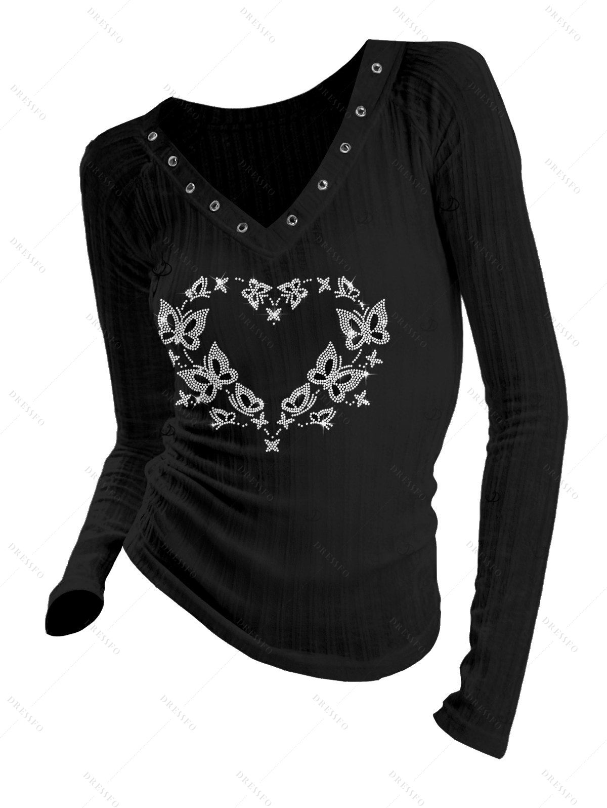 Haut à œillets à imprimé papillon et cœur pour la Saint-Valentin - Noir XXL | US 14