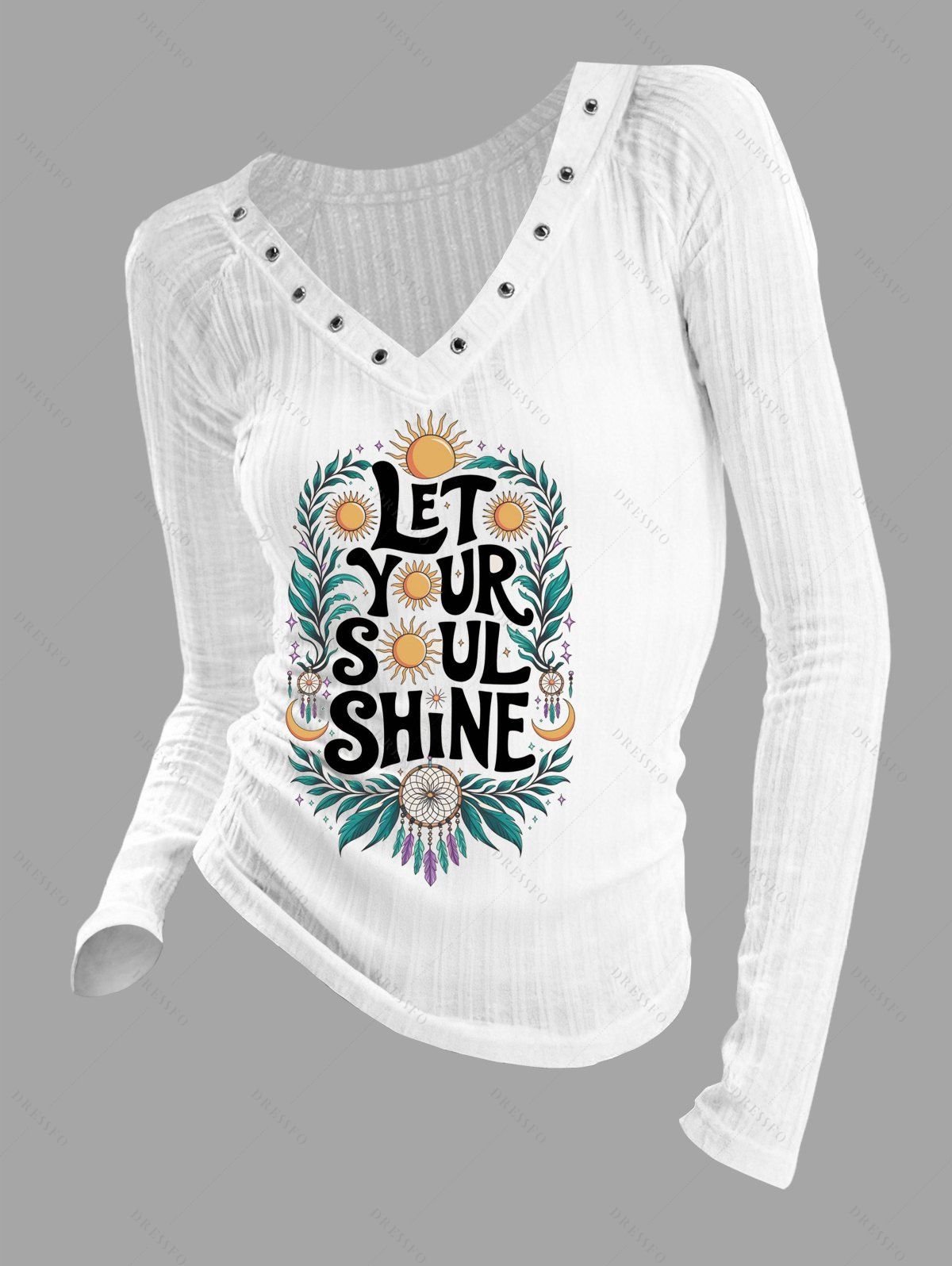 Haut à manches longues imprimé feuille de lettre soleil attrape-rêves et œillets texturé - Blanc XXL | US 14