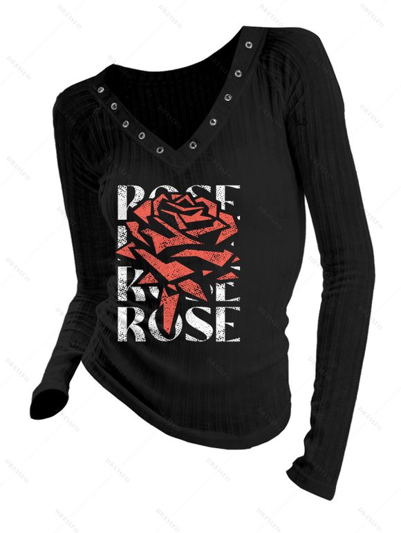 Haut à manches longues texturé à œillets et imprimé de roses pour la Saint-Valentin - Noir XXL | US 14
