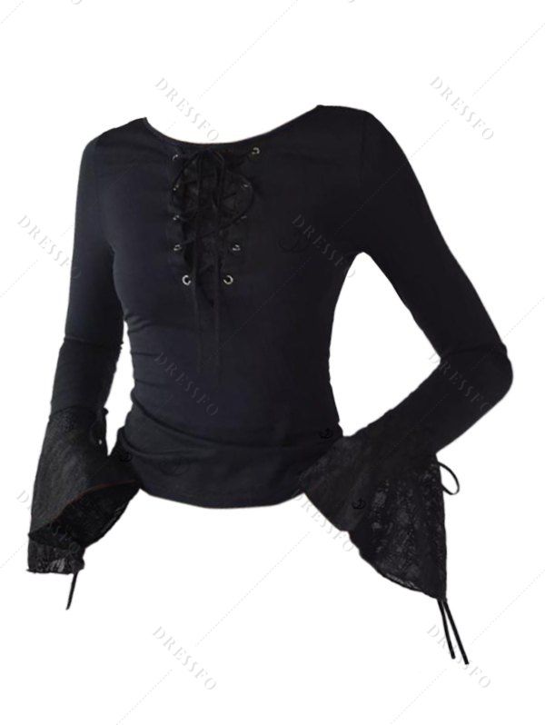 Haut uni à lacets et manches cloche - Noir S | US 4