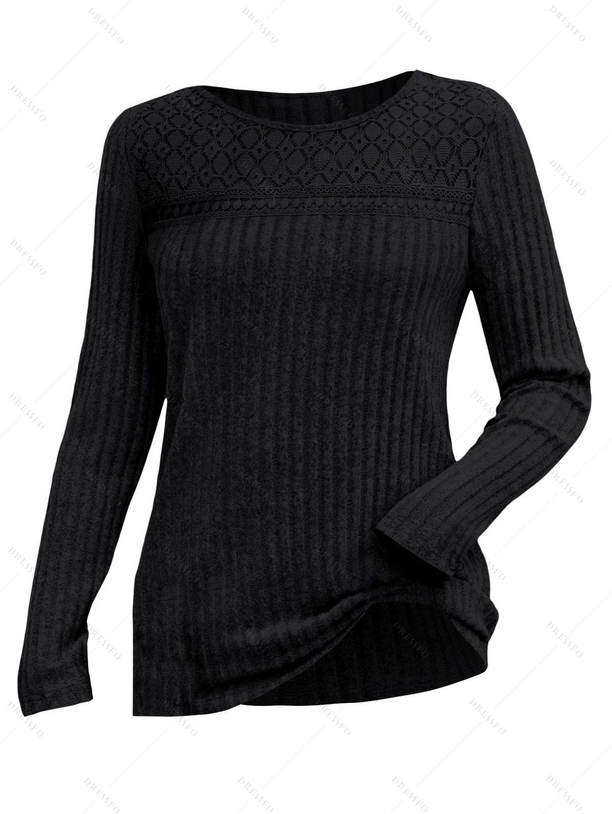 Haut uni texturé à motif géométrique ajouré - Noir XXL | US 12