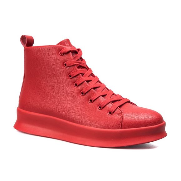 Hommes Casual tendance de la mode en cuir PU plat lacets Bottines - Rouge 40