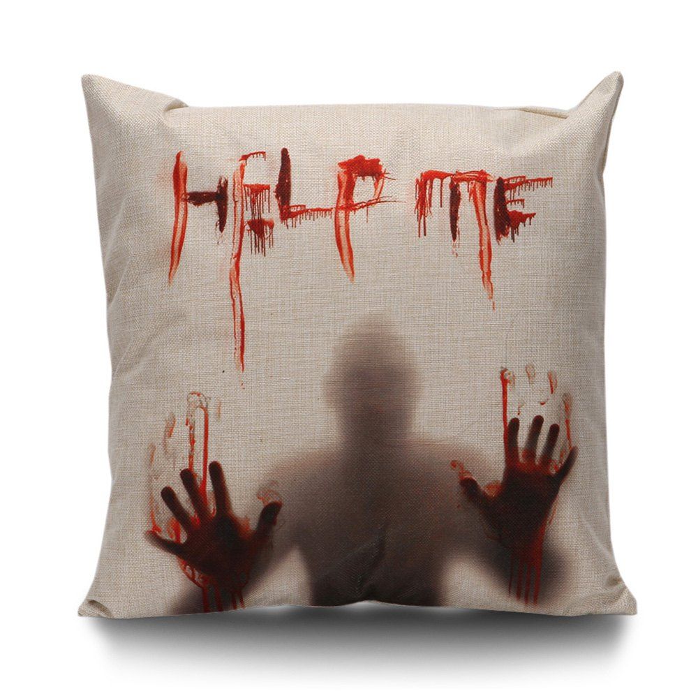 Housse de Coussin Imprimé Ombre Sanglante d'Halloween - Beige 45*45CM