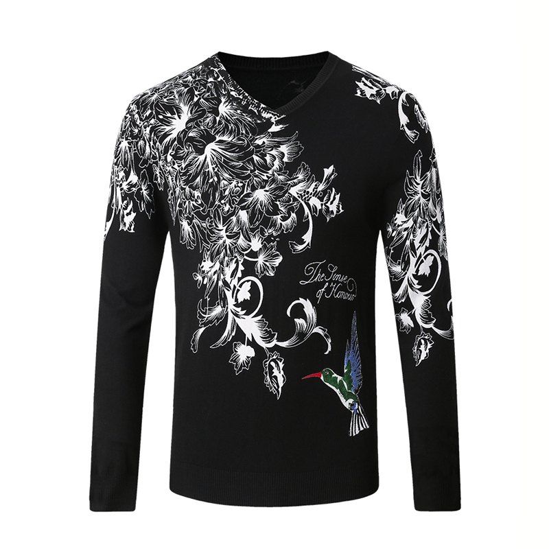 Hummingbird Print Pattern - Pull à col en V pour hommes - Noir 4XL