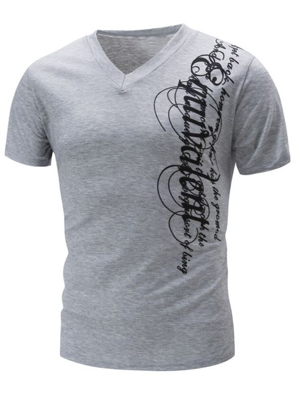T-shirt à Imprimé à Col en V - Gris Clair L
