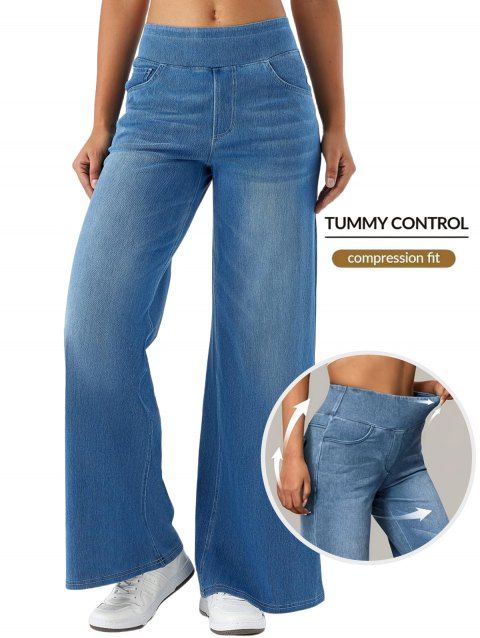 Jean Évasé Long à Taille Haute avec Plusieurs Poches Jean Évasé Long à Taille Haute avec Plusieurs Poches