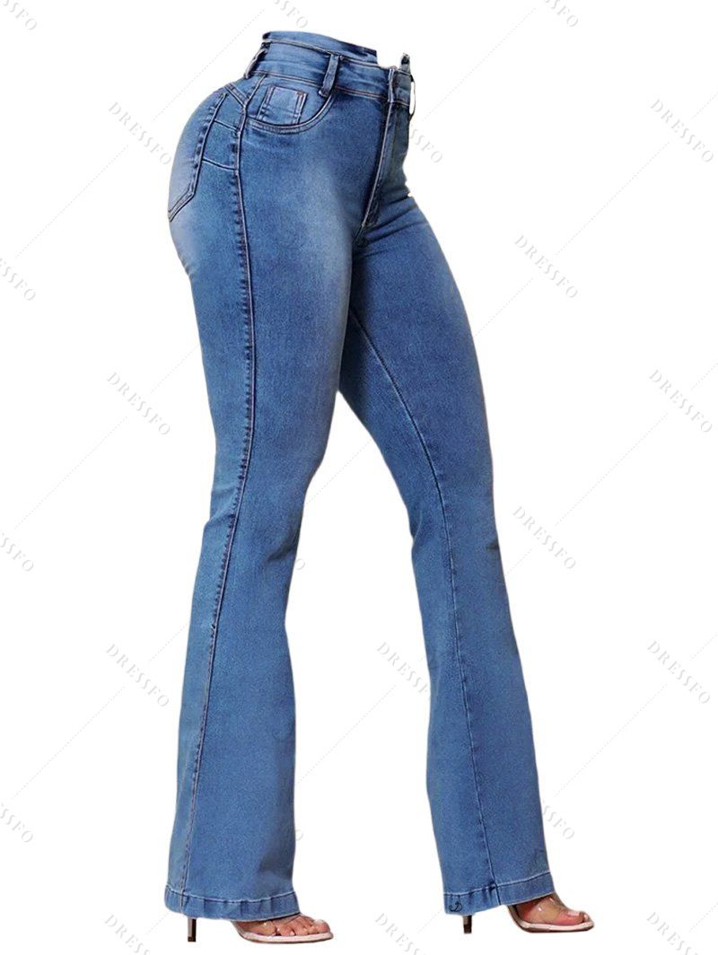 Jean évasé taille haute avec poches et braguette zippée - Bleu Toile de Jean XXL | US 12