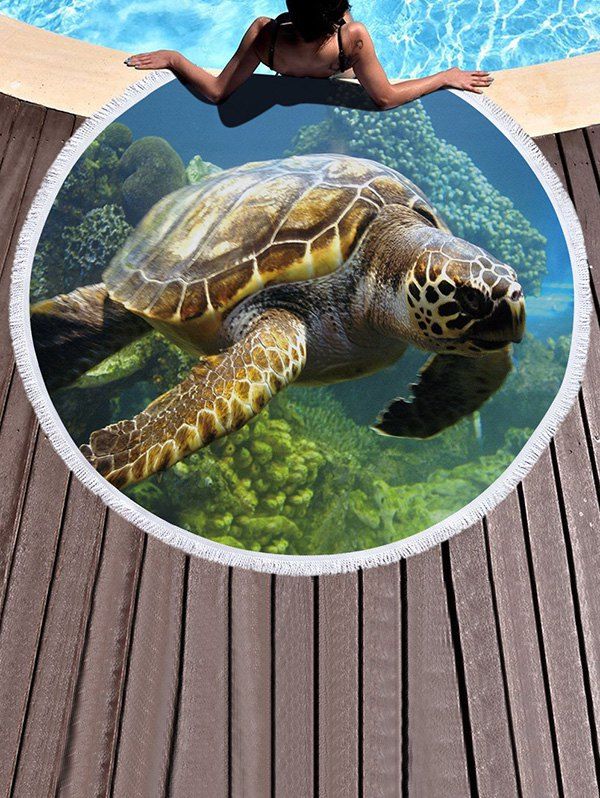 Serviette de Plage Motif de Tortue Sous-marin à Frange