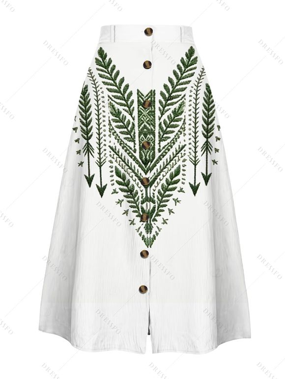 Jupe vintage à imprimé ethnique Arrow, boutonnée, coupe trapèze