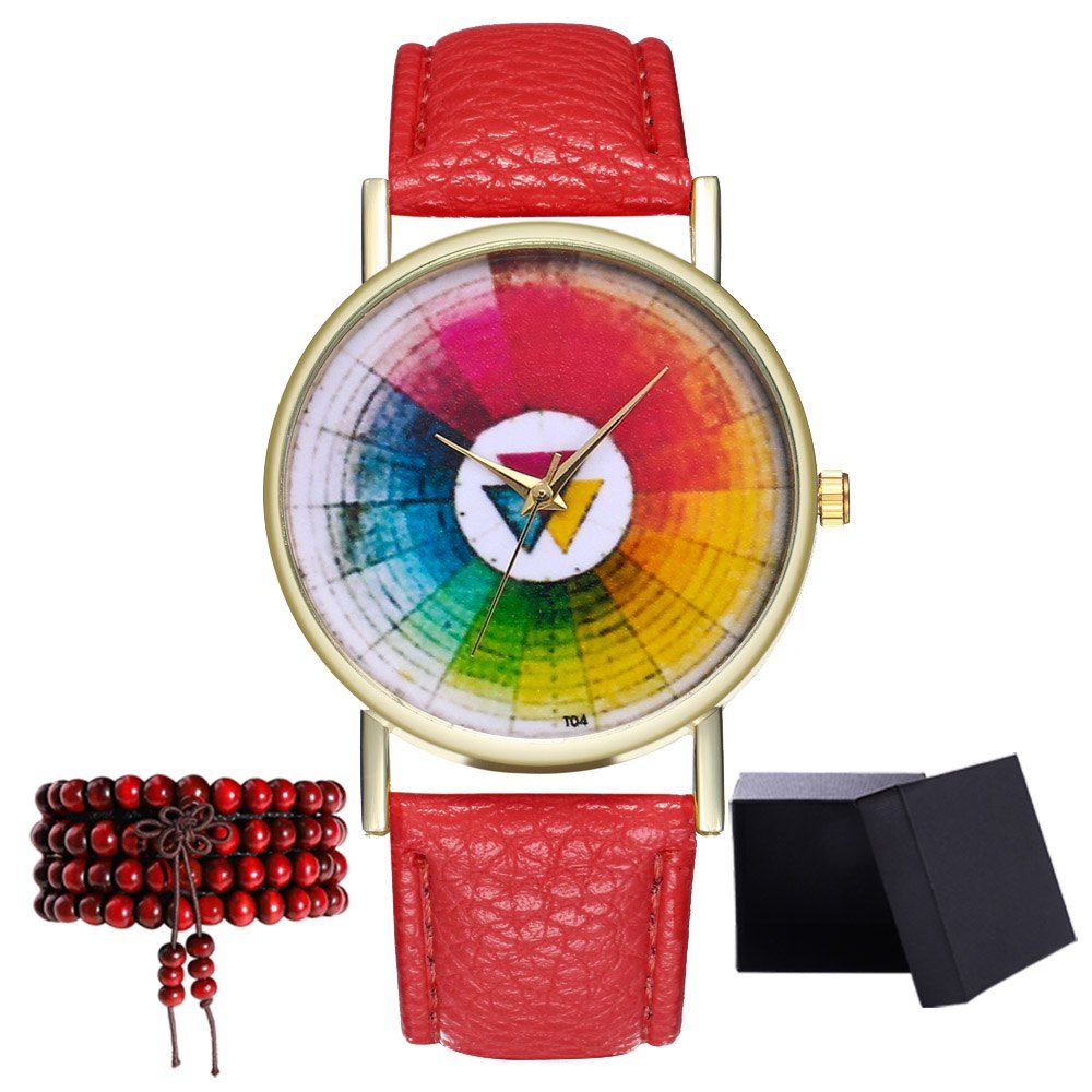 Détails du produit 1 modèles minces montres simples, bracelet en cuir de haute qualité, une variété de couleurs peuvent choisir 2. Temps de voyage précis, que ce soit l'auto-naissance ou cadeau est un bon choix 3 conception créative, temps de voyage précis, belle et généreuse 4. Ne mettez pas la montre dans l'eau 5. Taille d'emballage 9 x 8 x 5.5cm 6. Liste de produit: 1 x montre, 1 x bracelet de perle en bois, 1 x boîte-cadeau